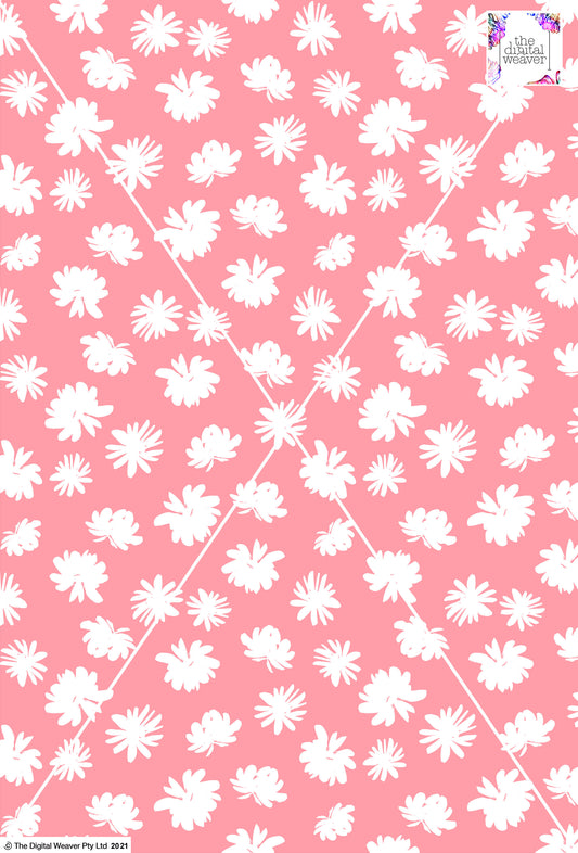 Retro Floral - 40mm - Pink & White