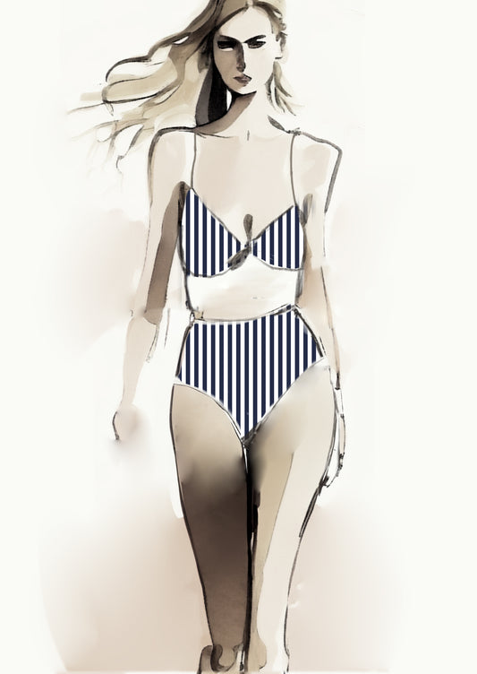 Stripe Vertical - 10mm - Navy Blue & White