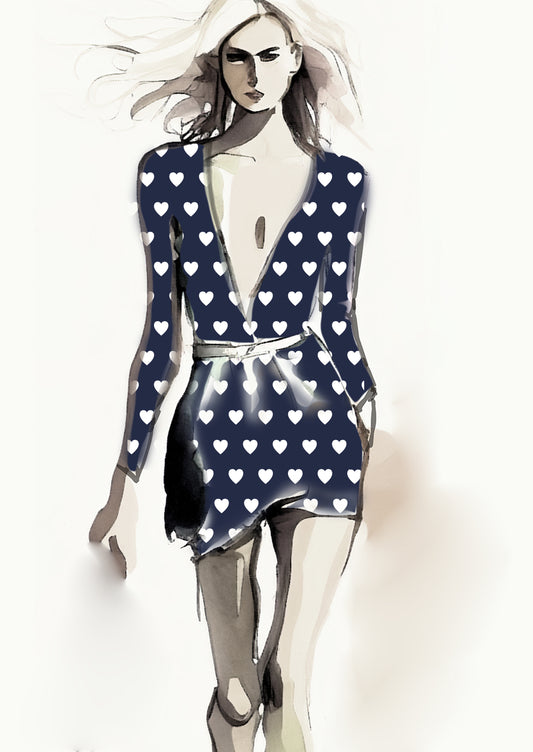 Heart Design - 3cm - Navy & White